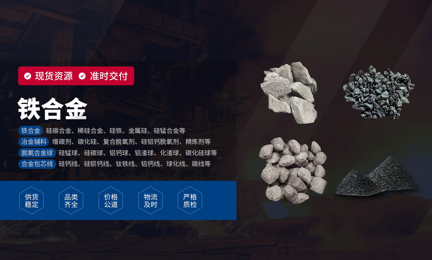 安陽鑫澤冶金耐材有限公司位于冶金材料工業(yè)基地——殷都區(qū)曲溝鎮(zhèn),是以鐵合金、冶金輔料為主營業(yè)務(wù)的企業(yè)。公司講求信譽(yù),信守合同,以“為企業(yè)提供合適的方案,為客戶創(chuàng)造更高的價(jià)值”為理念,致力服務(wù)于煉鋼、鑄造等冶金領(lǐng)域的廣大客戶。